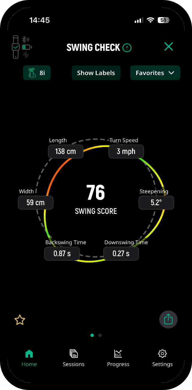 The deWiz Swing Score describes how closely your latest swing matches the swing you have chosen as your benchmark –